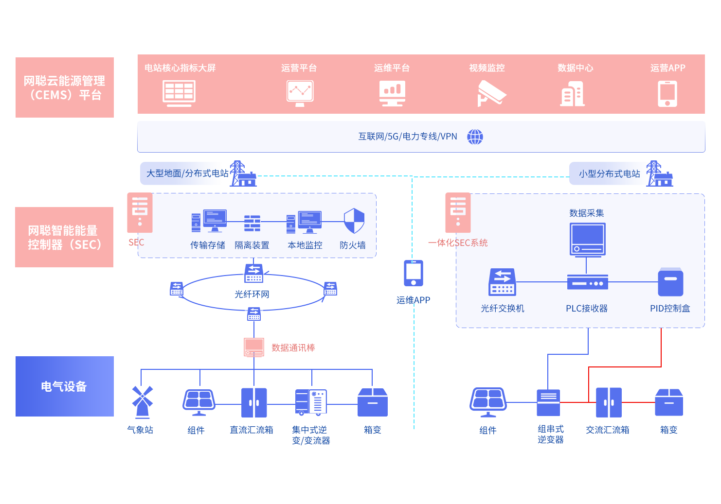 应用于新能源电站的能量管理智能设备,它支持设备数据采集、协议转换、能量管理和边缘计算,并支持多种组网、安装方式及电气与环境防护。